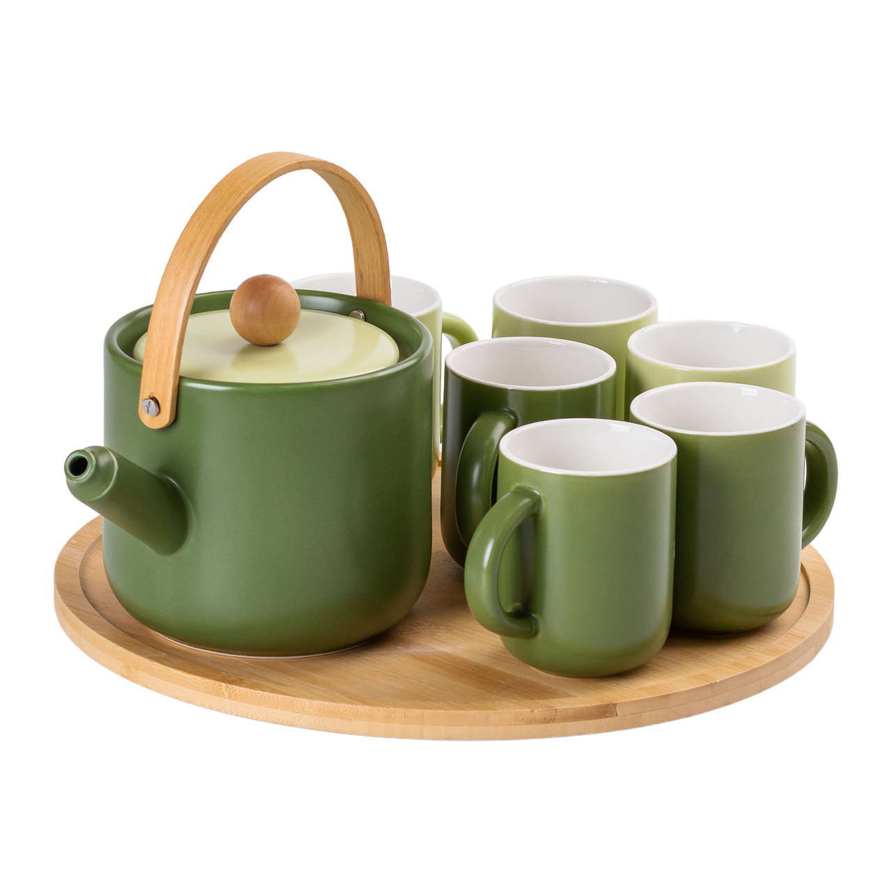 Керамічний чайний сервіз на 6 персон - чудове рішення для створення затишної атмосфери на зустрічах із друзями та близькими. Набір включає шість чашок, чайник і бамбукову підставку, що обертається, поєднуючи практичність і стиль в одному елементі інтер'єру. Чайник із високоякісної кераміки зберігає тепло напою, а чашки, виготовлені за сучасними стандартами, забезпечують довговічність і підходять як для гарячих, так і для холодних напоїв. Універсальний дизайн робить сервіз ідеальним для будь-якого випадку. Характеристики: Об'єм чайника: 1,2 літра Об'єм чашки: 250 мл Матеріал: кераміка, бамбук Розміри: 32,5*32,5*16 см Комплектація: Чайник 6 чашок Бамбукова підставка Переваги сервізу: Теплоізоляція: чайник зберігає напій гарячим довше. Універсальність: чашки підходять для напоїв будь-якої температури. Естетика і зручність: бамбукова підставка, що обертається, полегшує доступ. Екологічність: бамбук гармонійно вписується в будь-який інтер'єр. Практичність: стильний і довговічний набір для дому та гостей.